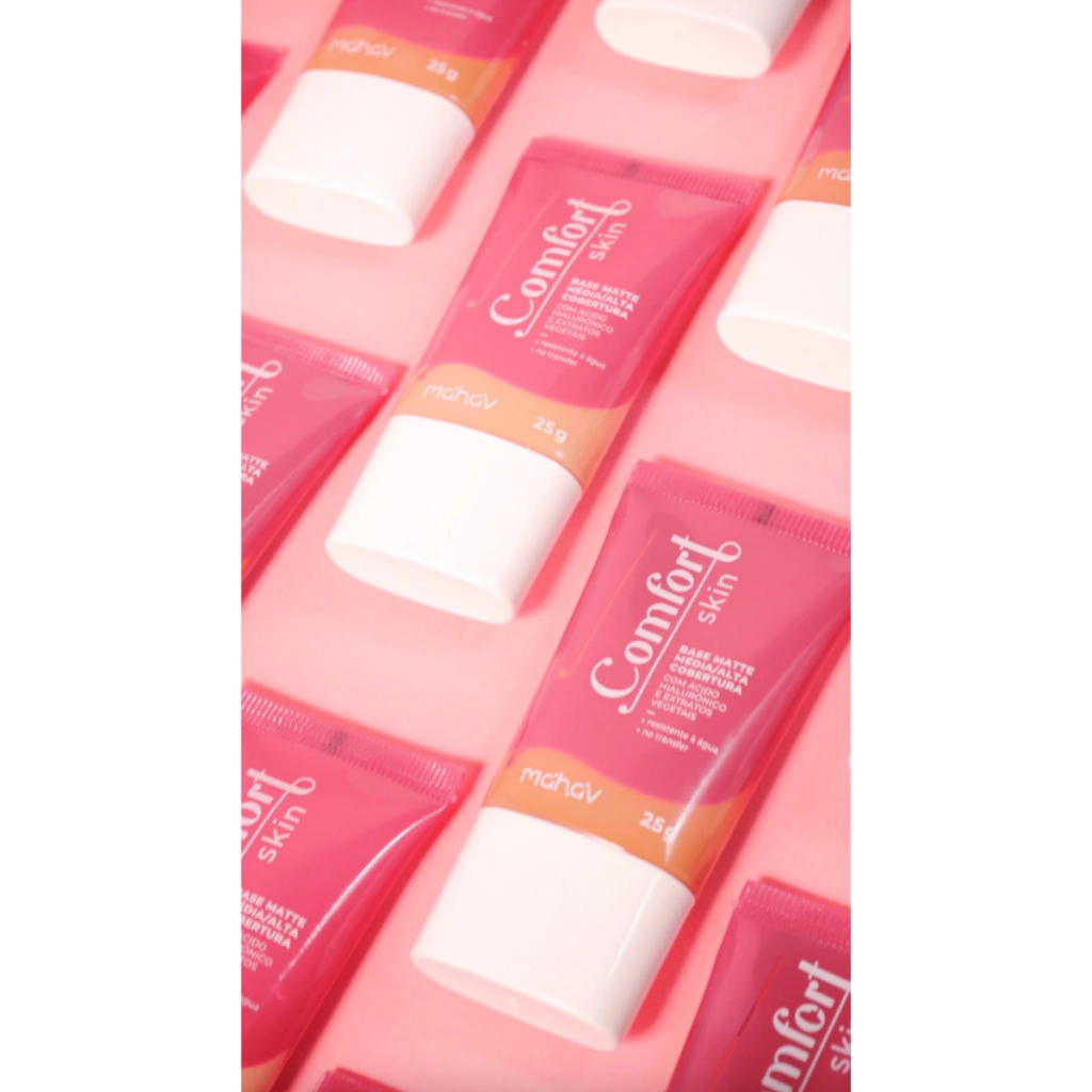 A Base Matte Comfort Skin Mahav Cor 07 oferece acabamento matte, ideal para quem busca conforto e cobertura média/alta. Respeita a elasticidade e o viço natural da pele com sensorial delicado.